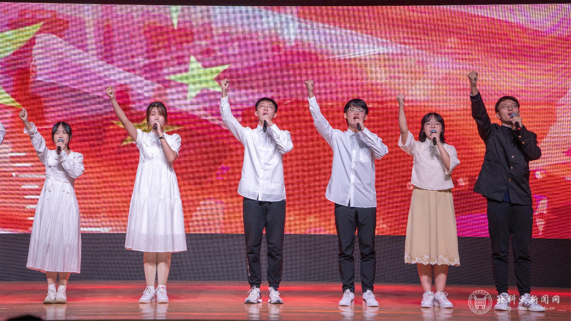 第三篇章为“担当·时代重任”,时代呼唤担当,在本篇章中,计通学院的朗诵《再出发》,文法学院的合唱《星火燎耀》,能环学院、化生学院、经管学院共同表演的歌舞《奔跑的少年》以及合唱团学生带来的《有我》,再次唱响了“请党放心、强国有我”的最强音,同时新生辅导员代表也依次表达了对新生的真诚寄语和美好期盼。晚会在管乐团带来的交响音画《钢铁脊梁》中圆满落幕。