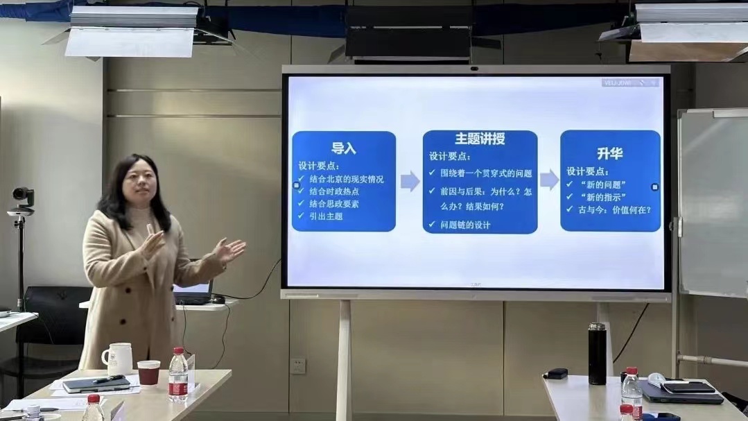 参赛教师崔晓丹以“坚持爱国爱党爱社会主义相统——深刻理解当代中国爱国主义的本质”、“至公无私,大同无我一一如何理解社会主义道德的集体主义原则”,郭蔚然以“中国人民志愿军的‘钢少气多’从何而来?”、“1922:统一战线的起点”分别进行专题展示。